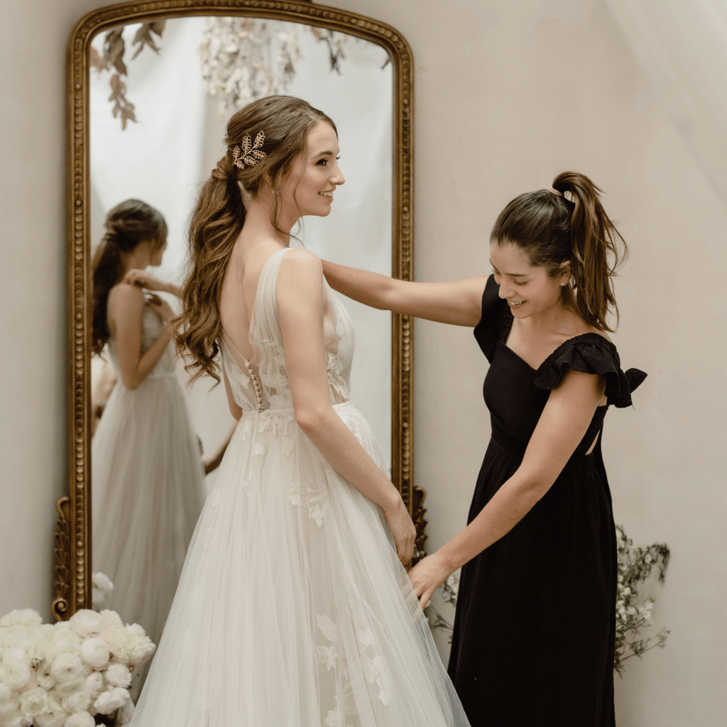 Incluso si no compras el vestido con nosotras, te ofrecemos asesoría y arreglos para asegurarnos de que el vestido de tus sueños te quede impecable.