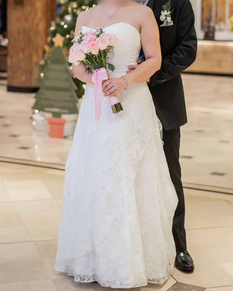 Con un corte A-line y delicados detalles en encaje, realza la silueta y brinda comodidad. Su escote palabra de honor aporta un toque elegante, mientras que la falda con ligera cola añade un aire de ensueño. ¡Perfecto para tu día especial!