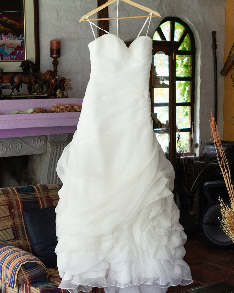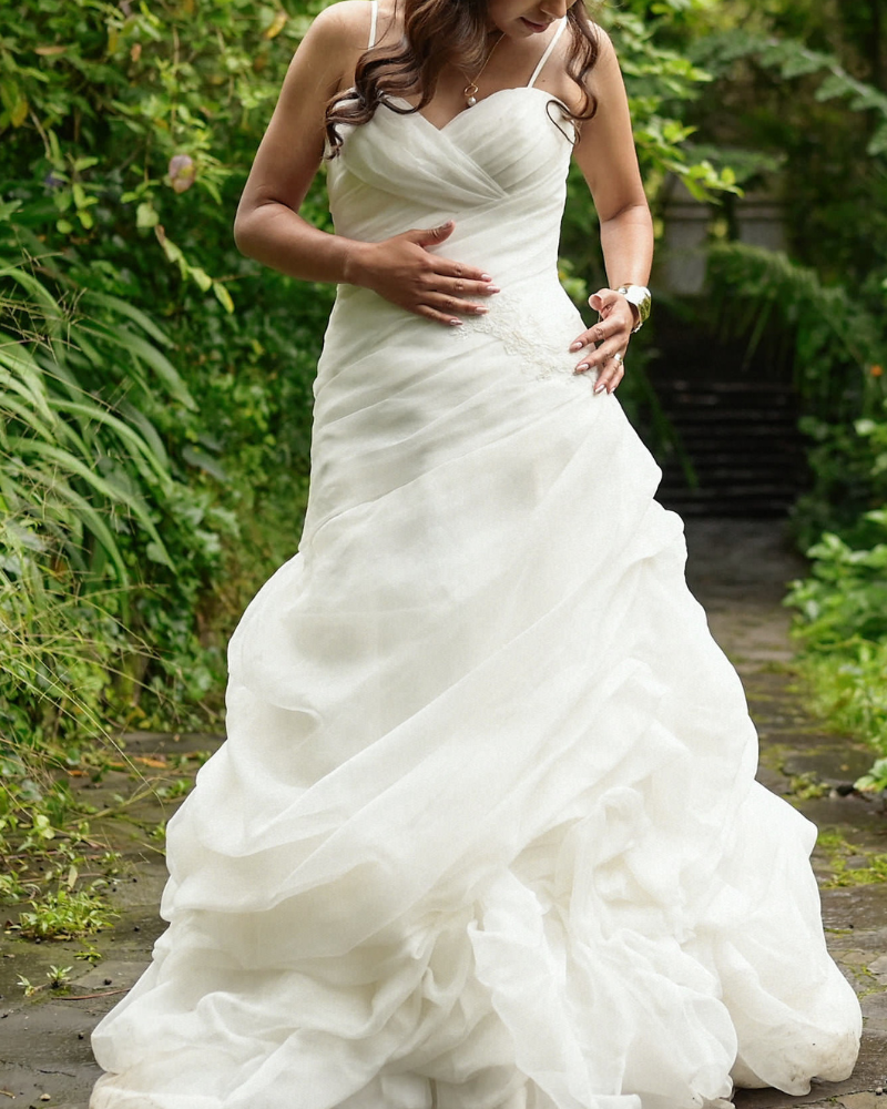 l vestido Casa Blanca combina elegancia clásica y suavidad con su confección en organza, una tela ligera y etérea que aporta movimiento. Su escote sin tirantes y silueta en línea A estilizan la figura, añadiendo un toque romántico y delicado. Ideal para una novia que busca un look refinado y femenino.
