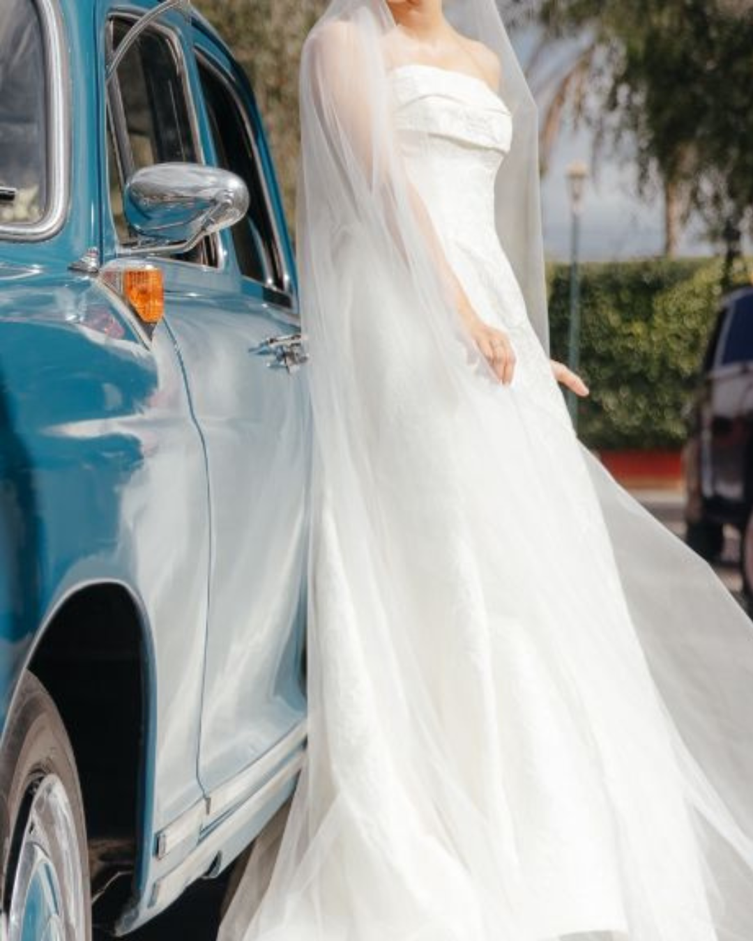 Una pieza que equilibra tradición y modernidad, ideal para novias que buscan un look distinguido, minimalista y con carácter artesanal.