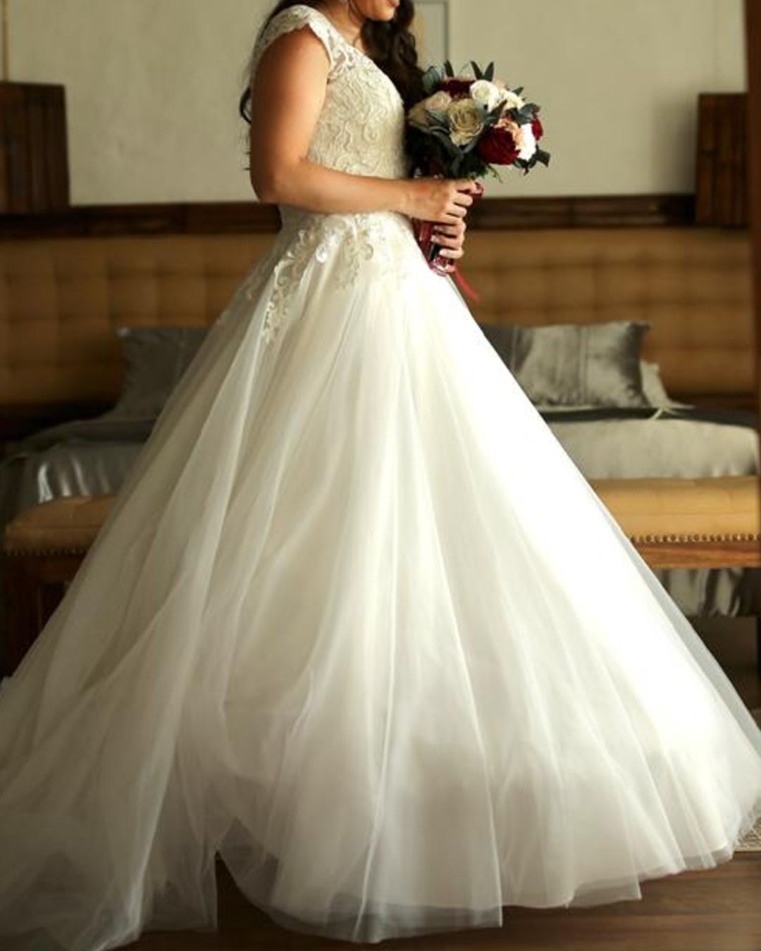 No todos los vestidos que se encuentran en la web están en nuestro showroom. Toma en cuenta las especificaciones del vestido si se acercan a tus medidas.