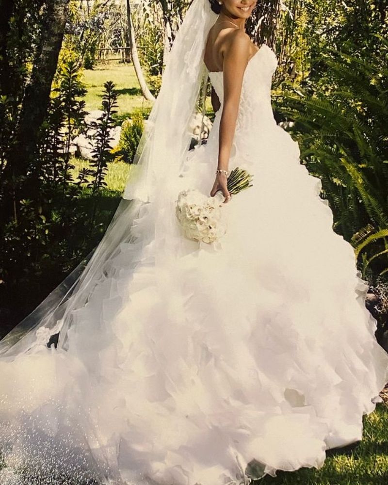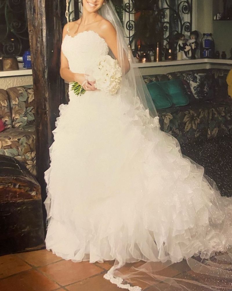 Este encantador vestido modelo Blanca de Pronovias 2012, se destaca por su escote corazón y una falda con volantes en distintos tamaños, logrando un volumen ligero y un efecto muy femenino. Confeccionado en organza, ofrece comodidad y suavidad al tacto, ideal para novias que buscan algo totalmente diferente. Su diseño está pensado para realzar la silueta, marcando la cintura y estilizando suavemente la cadera, mientras el espectacular faldón le aporta un toque de romanticismo. Perfecto para brillar en el gran día, el modelo Blanca fusiona elegancia, ligereza y un estilo atemporal que convertirá cada paso hacia el “sí, acepto” en un momento inolvidable.